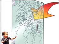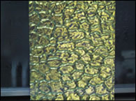 在玻璃或透明有機滌綸薄膜上涂敷一層感光層,利用激光在上刻劃出任意的幾何光柵或全息光柵,鍍上鋁再涂上保護漆,就制成了鐳射玻璃。