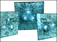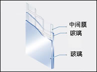 夾層玻璃,就是在兩塊玻璃之間夾進一層以聚乙烯醇縮丁醛為主要成分的PVB中間膜。玻璃即使碎裂碎片也會被粘在薄膜上。