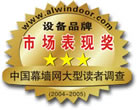作為行業內具有廣泛影響力和讀者群體的領先媒體,中國幕墻網于2005年1月下旬舉辦2004-2005中國幕墻網大型讀者有獎調查,這是行業內第一次大規模的媒體調查活動,通過這次調查活動,將真實反映2004-2005年度本行業各板塊市場的區域銷售、品牌狀況,為廣大讀者,消費者、采購者提供權威的品牌選用、采購指南。 本次調查的內容包括中國幕墻網讀者基本情況調查及產品市場調查。本次調查除中國幕墻網用戶調查外,還設了 “密封膠”、“玻璃”、“型材”、“設備”四個板塊分類調查供讀者選填。品牌調查分為市場占有率調查及讀者首選品牌調查。 調查于2005年3月13日結束,現根據調查結果公布2004-2005年度的各產品"最佳市場表現"和"讀者首選品牌"排名及單項獎結果如下(各品牌區域市場占有詳細分析結果請和中國幕墻網聯系 0832-2203290) 總有效票數: 4860