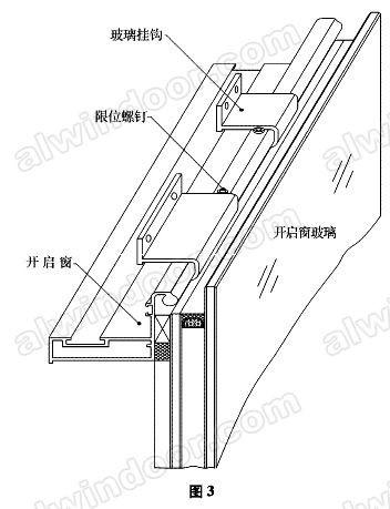 玻璃掛鉤分段后,不但節約材料,安裝方便,而且便于開啟扇的調整,保持開啟扇處于自由狀態,不會因為鋁料的變形而造成安裝