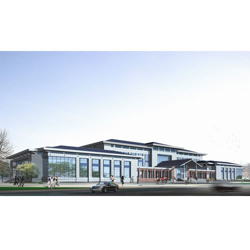 鋼結構屋面采用雙曲馬鞍面的空間造型,屋面邊緣高度逐漸平緩變化,形成優美的空間曲線。支撐屋蓋的結構主要為周邊28根V型柱和支撐在