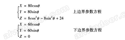 將上下邊界兩條曲線分別轉化為以方位角B為參數的方程,如下: