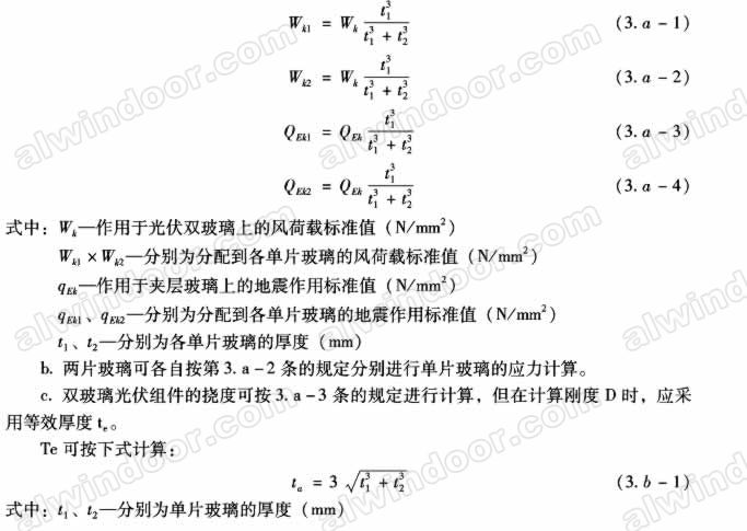 作用于雙玻璃光伏組件上的風荷載和地震作用可按下列公式分配到兩片玻璃上: