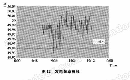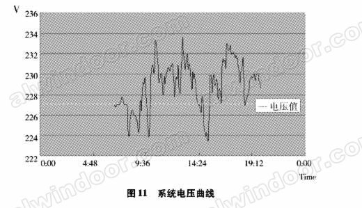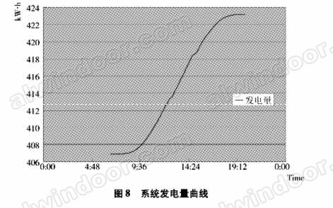整個發(fā)電系統(tǒng)由三個子系統(tǒng)組成,從上面的曲線圖可以看出:從6:45-19:45組件一直發(fā)電工作13個小時;經(jīng)過系統(tǒng)轉(zhuǎn)正常送電至用戶端從7:35-18:50累計11小時15分;整天累計發(fā)電16度;電壓變化在士5%以內(nèi),頻率變化在正負0.18%以內(nèi);最高發(fā)電功率發(fā)生在13:30分,達到2820 W。從采集到的數(shù)據(jù)可以看出該電站發(fā)電效率隨著太陽輻照的強度的增加而提高,也隨著當?shù)亍斕斓奶鞖馇闆r的變化而變化。最高峰時間出現(xiàn)在12:00-14:00之間,工作電壓和頻率都在額定的范圍內(nèi)。