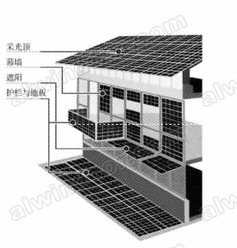 的形式越來越多樣化。而作為玻璃幕墻的一種深化表現(xiàn)形式,光伏建筑一體化在建筑物上也出現(xiàn)了多種多樣的應(yīng)用形式。如圖3所示。