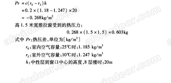 無論密封條設(shè)置在窗扇或框上.在15度溫差外界無風(fēng)時.產(chǎn)牛的熱壓都可形成熱壓涌風(fēng).熱壓值可以用下公式: