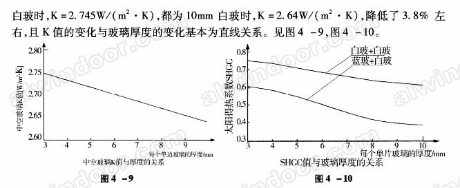 從計算結果也可以看出,增加玻璃厚度對降低中空玻璃K值的作用不是很大,Smm+Al2mm+8mm的組合方式比常用的6mm+Al2mm +6mm組合K值降低0. 03 w/(m