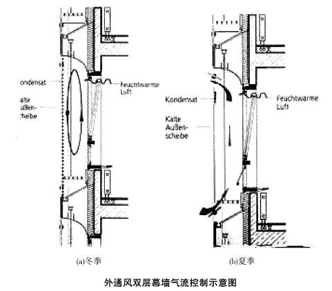 保溫作用,減少了建筑物采暖的運行費用。此外,外通風雙層幕墻也可以根據需要而在熱通道內設置可調控的