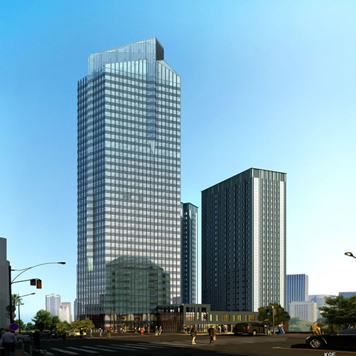 雙子塔在外形設(shè)計(jì)和高度上完全一樣,典型的正方形塔樓,四邊線條輪廓明朗,無(wú)一絲冗余設(shè)計(jì),完全用最簡(jiǎn)潔的方式打造,這大概就是“少即是多”的設(shè)計(jì)原理,這也是做為一個(gè)設(shè)計(jì)師最難能可貴的品質(zhì),越簡(jiǎn)單的東西越能體現(xiàn)不凡之處,也越能禁得住時(shí)間的考驗(yàn),越是不容易被時(shí)尚所淘汰。雙塔外立面采用單元式玻璃幕墻,裙樓部分則用鋁板幕墻和玻璃幕墻搭配,整體效果是非常令人驚艷的,據(jù)說(shuō),不少人因?yàn)檫@個(gè)項(xiàng)目而選擇在周邊置業(yè),也算是對(duì)該項(xiàng)目未來(lái)前景的肯定。