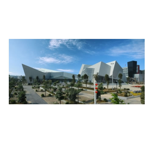 外立面三層幕墻主要以鋁單板+鋁合金(詞條“鋁合金”由行業大百科提供)格柵與玻璃+鋁合金格柵兩種形式結合,屋檐、屋面采用防木紋蜂窩鋁板與川西風格的青瓦坡屋頂結合,在現代建筑上完美添加了古建的元素。