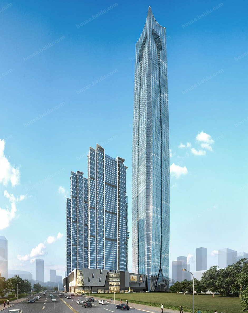 沈陽寶能環球金融中心,該項目總投資額約100億元,其中超高層主樓和副樓為辦公和酒店,樓高分別為565米和328米,建成后將成為中國東北地區最大城市沈陽的地標建筑。高565米的主樓將成為沈陽的第一高樓,
