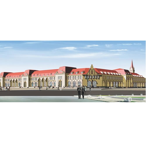 伯明翰中心廣場,是伯明翰中心最大的公共廣場,目前缺乏凝聚力和可識別性,一種氛圍。Mecanoo的設計使廣場具備了三個特征:紀念性、文化性和娛樂性。Repertory劇院(REP),一個1960年代的混凝土建筑,2009年設計的伯明翰圖書館和Baskerville住宅,1936年設計的砂巖(詞條“砂巖”由行業大百科提供)建筑,這些建筑是這個城市的歷史敘事。Mecanoo所謂的紅線是城市中最繁忙的步行路線,引導人流進入中心廣場。圖書館的懸挑不僅為伯明翰圖書館和Repertory劇院的入口提供遮蔽,另一方面也為廣場提供了良好的視線。