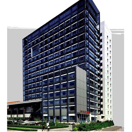 玻璃幕墻位于建筑的上部5層~8層,共4層,內庭部分局部為9層。表面看來,該建筑玻璃幕墻為中規中矩的矩形,外表面平平整整,既沒有大的立面凹凸,也沒有異形的空間曲面(詞條“曲面”由行業大百科提供),所有人都以為這種項目是既容易設計又容易施工的;然而只要了解到這座玻璃幕墻既不是雙層幕墻,又不是光電幕墻,也不是單元式幕墻,而其綜合單件確須高達2600元每平方米才能完成,就可以想象其玻璃幕墻的特殊性了。