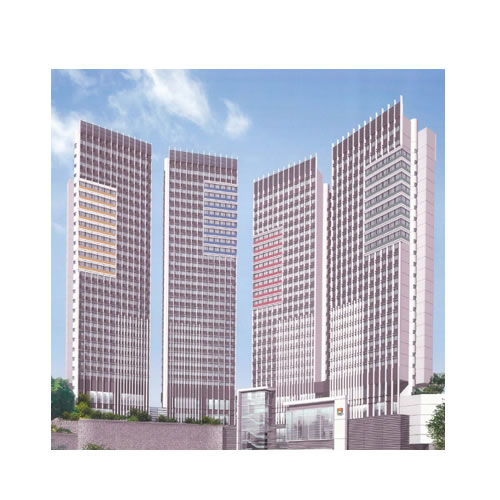 極富識別度的折疊狀幕墻包裹著26層高的塔樓,塔樓平面(詞條“平面”由行業大百科提供)呈三角形。淺灰色玻璃纖維混凝土與灰色玻璃被交替懸掛布置,使得建筑的三個立面從不同角度望去都有由虛到實的變幻效果。每兩層為一個單元設置纖細的橫向玻璃纖維混凝土分隔,營造了和諧的立面肌理。折疊幕墻及通高的落地大窗保證客房私密性的同時在一定程度上面向城市空間開放,實現了獨一無二的空間質感。塔樓立面的材料和結構邏輯也延續到了酒店擴建出的入口區域。與幕墻相同的玻璃纖維混凝土飾面板構成10米高柱廊在建筑的西側和南側限定出入口空間,同時在南側圍合出半開放庭院。