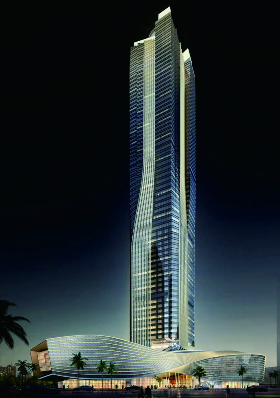 總高339米的主塔樓分為地上69層、地下4層,由一座集合了辦公和公寓的超高層塔樓以及連于一體的地面裙樓組成。其功能主要包含甲級寫字樓、配套會展功能、商務公寓及商業服務設施。
