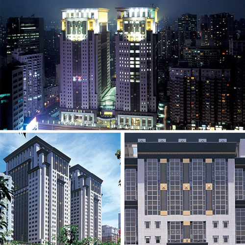 幕墻類型:石材幕墻+玻璃幕墻+金屬幕墻