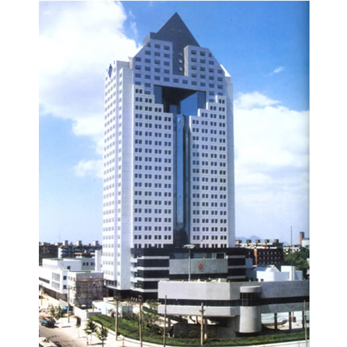 整個觀光塔的主體外圍護為圓柱面網格鋼結構,安裝精度(詞條“精度”由行業大百科提供)要求高,而塔身的三道懸挑桁架,分別下掛三段最大高度為44米的柱面網格鋼結構,用于幕墻安裝。該結構上端為固定鉸節點,下端采用針對此項目開發的變剛度(詞條“剛度”由行業大百科提供)彈性連桿,上下支座之間與主體結構無任何連接,施工難度大,安裝精度高。