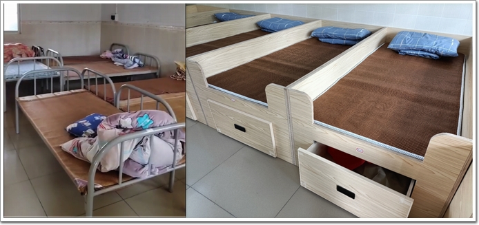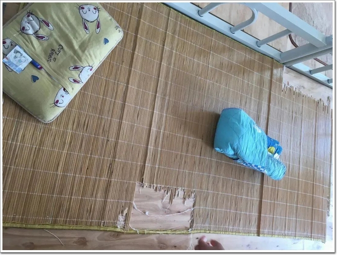 舊床席上的“破洞” 這場(chǎng)公益活動(dòng)就如火如荼地進(jìn)行。8月,趕在開學(xué)前,這批定制床迅速運(yùn)送到學(xué)校,由志愿者們協(xié)助組裝,更換了全校已經(jīng)過一定使用年限的鐵床架,讓學(xué)生開學(xué)第一天就能用上新床。