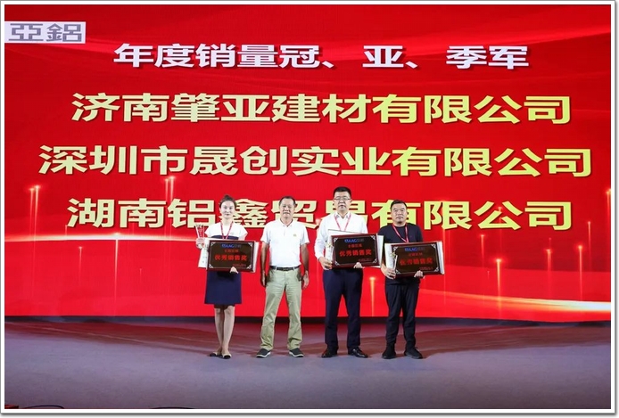 接著隆重揭幕了“AAG亞鋁2021年度銷量冠亞季軍、優秀銷售獎、特殊貢獻獎”。AAG亞鋁鄺主席、銷售中心副總經理張鵬先生、宗儉良先生為獲獎單位分別頒發了獎牌。