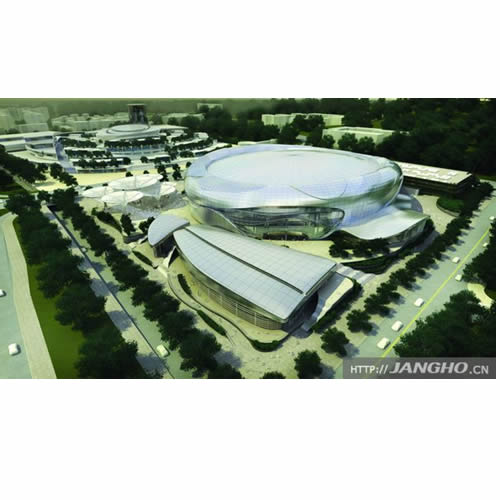 出水芙蓉花姿優美︱夜幕降臨,建筑平面如指狀向湖面及四周延伸,以自然的形態與公園環境交融滲透,運用玻璃幕墻與金屬幕墻之間的光影變化,用單榀、大跨度、大體量的鋼構營造出建筑外立面之美。