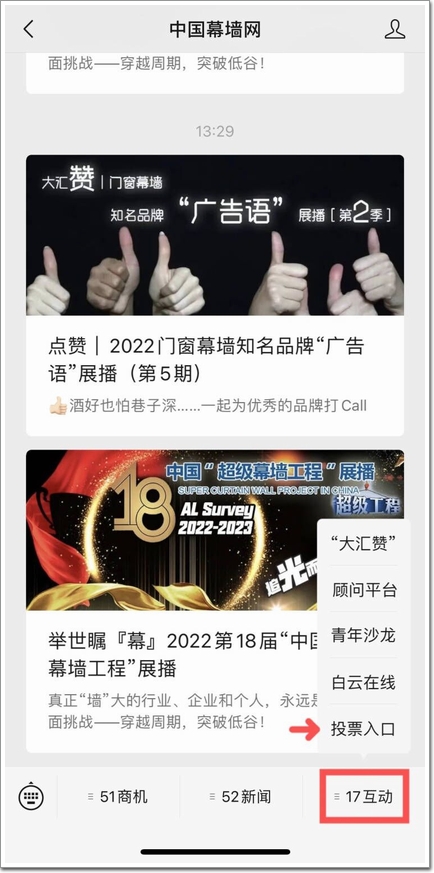 Step2、點(diǎn)擊右下角“17互動(dòng)”,進(jìn)入“投票入口”。
