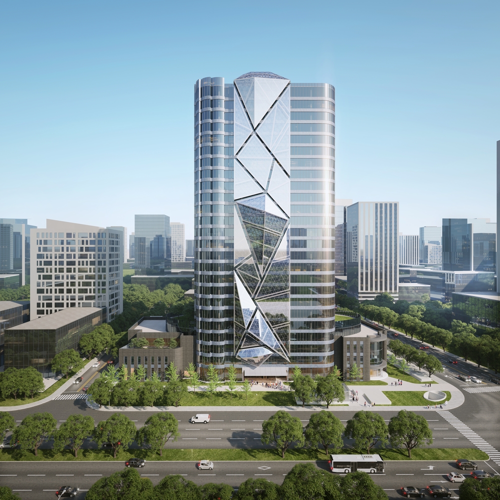 這座外立面以“鉆石”為標(biāo)志性元素的地標(biāo)建筑,利用正面幾何切割玻璃飾面所呈現(xiàn)出的幕墻系統(tǒng),充分結(jié)合了業(yè)主是“金融巨頭”這一企業(yè)屬性,詮釋出銀行品牌的核心價(jià)值——投資、增值、永恒……也使得整個(gè)大樓顯得更加挺拔的同時(shí),形成微妙的光影投影效果,凸顯出建筑的整體質(zhì)感。