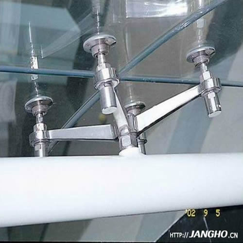 點支承裝置設計應符合《玻璃幕墻工程技術規范》JGJ102、《點支式玻璃幕墻工程技術規程》CECS127及《建筑玻璃點支承裝置》JG/T 138的規定。支承裝置應能適應玻璃面板在支承點處的轉動變形,其承受玻璃面板所傳遞的荷載或作用,不應在支承裝置上附加其他設備和重物。