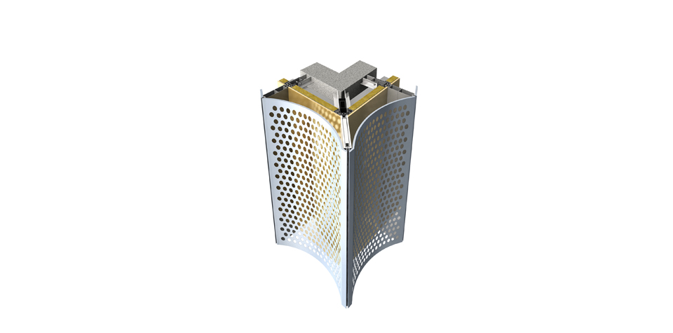 同時,針對由三角形和梯形兩種形狀擬合而成的金屬屋蓋異型曲面造型,以及大型曲面金屬屋蓋外設“雙曲異型鋁蜂窩板”造型裝飾板的特點,為保障擬合后的曲面順滑、流暢效果,技術團隊發明了一套可實現多功能無極調節的“云臺”連接系統,通過軸角碼自適應安裝角度,實現了曲面鋁板的萬向調節,確保蜂窩鋁板的安裝精度。