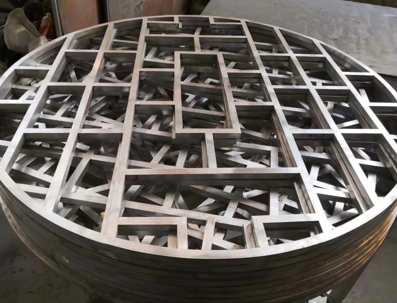 2、花狀結構落地,在設計中已經充分考慮了各塊鋁板的可調能力。但是實際施工中還是出現了安裝上墻后,調節吃力的情況。畢竟在空間位置上,頂部的背面工人操作空間有限,且存在高空危險,背面效果和正面效果可視同步性也比較差。造成多次調節對縫無果的情況出現。大家都明確板子尺寸對,序號對。但是就是對不上縫。為處理施工難度,重新調整思路。把整個鋼架落到地面,在地面完成所有鋁板與框架的安裝及調整工作。在整體調整滿意后,再實行整體花架起吊。這樣只要在高空確定平面高度和定位尺寸就方便多了。如此完成了施工落地(見圖17)。