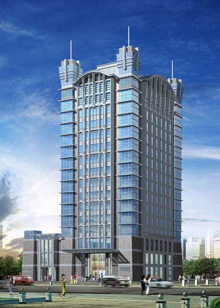 項目的外立面大量采用玻璃幕墻,其中超厚弧形玻璃占總量的1/3以上,采用與平面玻璃顏色一致的三銀鍍膜。同時,還大量采用蘋果砂不銹鋼裝飾條,增強了建筑的金屬質感。