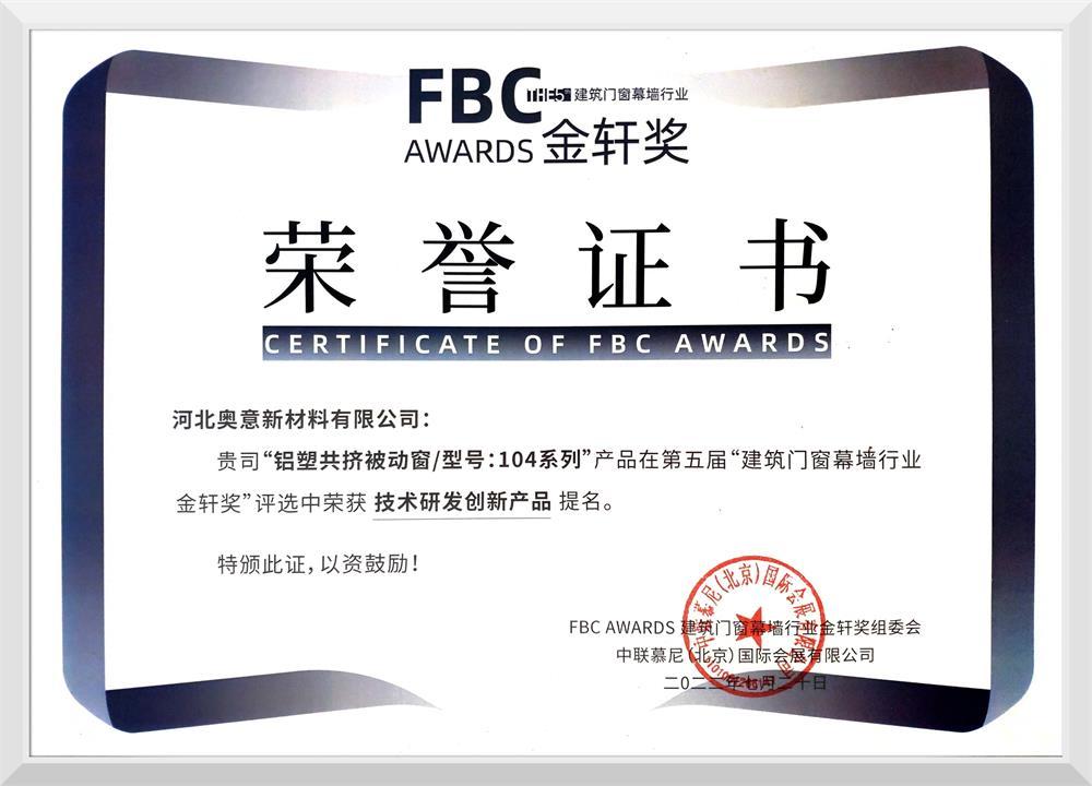 FBC AWARDS 建筑門窗幕墻行業金軒獎組委會