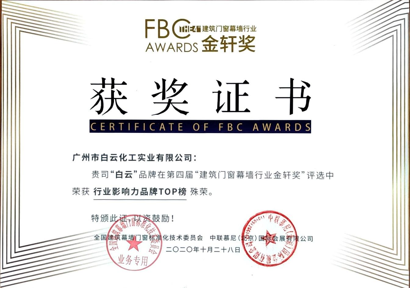 第四屆“建筑門窗幕墻行業金軒獎”行業影響力品牌TOP榜