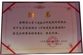 公司被評為《中國建筑金屬結構》雜志社副理事長單位