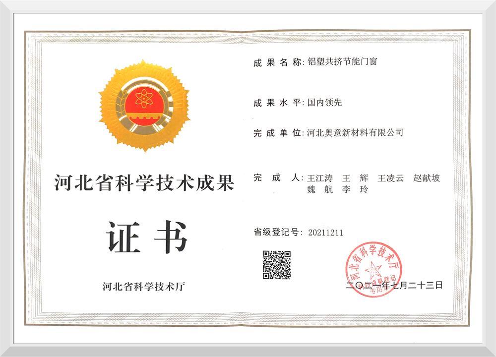 河北省建設行業科學技術進步獎勵證書