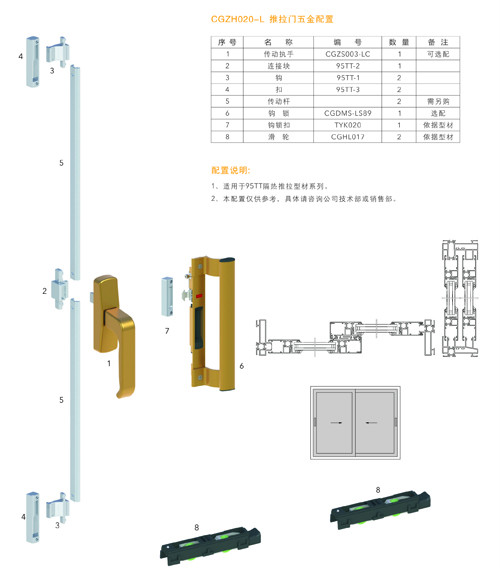 產品名稱:CGZH020-L推拉窗五金配置13616