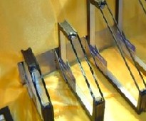 - 夾膠防火玻璃是一種用于建筑、車輛、船舶等方面的新型材料。它具有良好的透光性能、防火阻燃性能和隔熱、隔音性能。它是由兩層或兩層以上玻璃用透明防火膠粘結在一起制成的,在遇火后,防火膠粘體會很快膨脹、發泡、直至碳化,形成導熱系數非常低的很厚的像泡沫狀的絕熱層,繼而阻止火焰繼續蔓延。