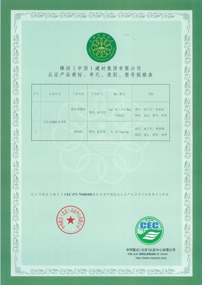 中國環(huán)境標(biāo)志產(chǎn)品證書-剛性防水材料2 |