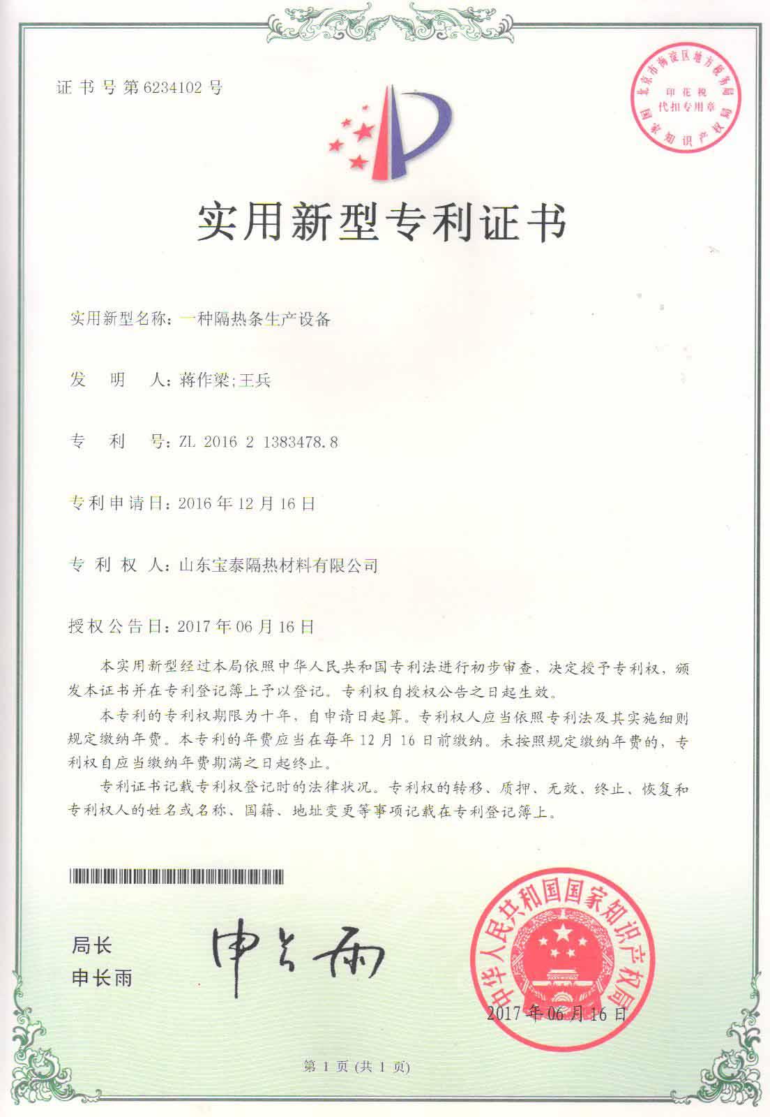 實用新型專利-一種隔熱條生產設備 |