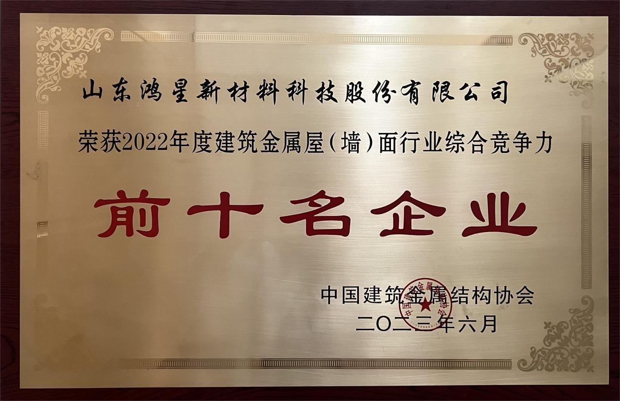 2022年度建筑金屬屋(墻)面行業綜合競爭力前十名企業