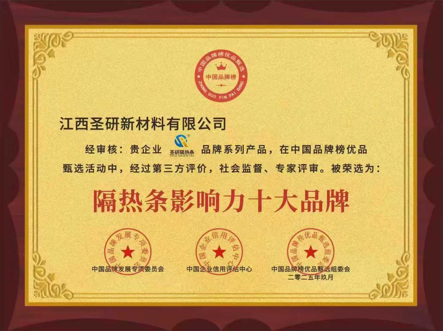 證書名稱: 2025家裝門窗隔熱條一線品牌