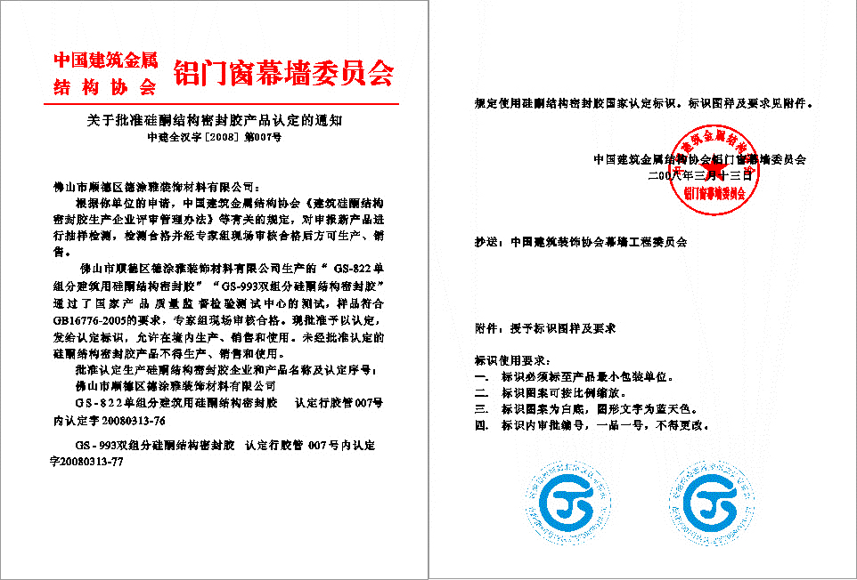 證書名稱: 國家結(jié)構(gòu)膠生產(chǎn)認定企業(yè)