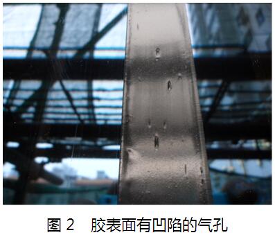 1) 注膠不飽滿時(shí)進(jìn)行修整,氣泡分散在膠表面,形成凹陷的氣孔。如圖2: