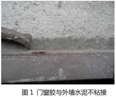 在實際工程中,門窗膠一旦出現與基材粘接不良的情況(見圖1、圖2),將極可能導致門窗使用一段時間后,出現漏水現象,嚴重影響到正常使用。