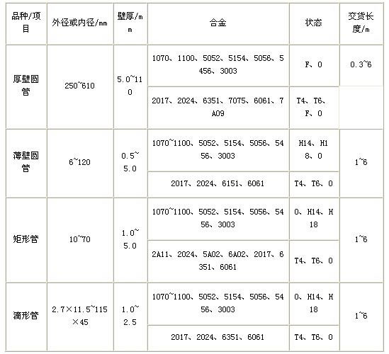 鋁及鋁合金管材的品種和規(guī)格