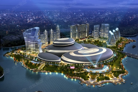 位于紹興鑒湖-柯巖旅游渡假區,總投資約80億元,總用地面積約39萬平方米,總建筑面積約100萬平方米。由以商務辦公、酒店式公寓和五星級酒店為主的商業區,以室內山館和水館為主題,包括A、B、C、D、E、F六個館的旅游區,以高檔低層住宅和高層住宅為主的住宅區組成。該項目是浙江省重點旅游項目,突出旅游和休閑功能。打造集觀光、戲水、休閑娛樂和餐飲購物于一體的大型城市綜合體。