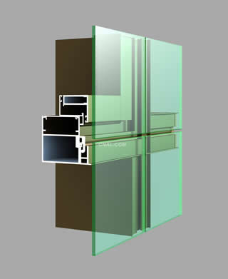 隱框鋁合金玻璃幕墻是將玻璃用硅酮結構密封膠(簡稱結構膠)粘結在鋁框上,在大多數(shù)情況下,不再加金屬連接件。因此,鋁框全部隱蔽在玻璃后面,形成大面積全玻璃鏡面。在某些工程中,垂直玻璃幕墻采用帶金屬連接件的隱框幕墻。金屬扣件可作為安全措施,但容易因產(chǎn)生集中應力使玻璃破裂。玻璃與鋁框之間完全靠結構膠粘結