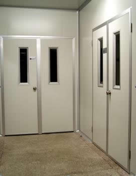 用鋼質(zhì)材料制作門框、門扇骨架和門扇面板,門扇內(nèi)若填充材料,則填充對(duì)人體無毒無害的防火隔熱材料,并配以防火五金配件所組成的具有一定耐火性能的門。