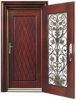 門扇采用鋼板經過一次模壓成形后,再與實木框架和內填料復合而成。