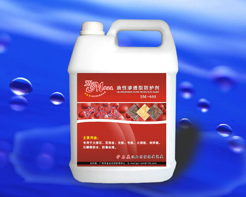 防護劑是硅氧烷聚合物為主要原料合成制作的高性能保護劑,該保護劑無可見膜。硅氧烷分子能充分滲透進入石材2~8毫米,達到永久性防污、防水的效果,是各類石材的優良保護劑。