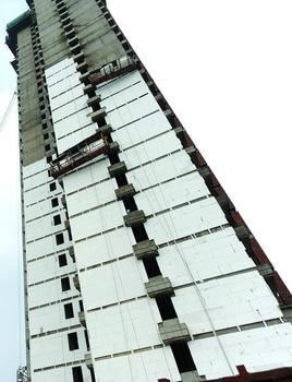CL建筑結構體系(Composite Light-weight building system),也稱為復合保溫鋼筋焊接網架混凝土剪力墻(Concreteshearwall with composite heat insulation welded steel frame),它是由CL墻板、實體剪力墻組成的剪力墻結構。CL結構體系的材料組成是CL網架板做主要承重構件的骨架(偏居中放置,兩側澆筑砼),以高壓高強石膏板作為施工澆筑砼的永久性模板(替代了鋼模板和抹灰);同時,內隔墻采用高壓高強石膏空心砌塊砌筑而成。該結構的保溫層耐久性好、耐火極限高;建筑保溫與結構同壽命,該結構是解決目前建筑保溫材料使用年限遠小于建筑結構使用年限的一種方法。